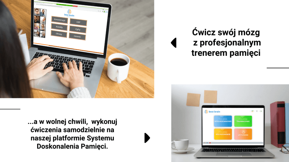 Biorąc udział w naszych codziennych zajęciach nie tylko popracujesz nad swoją pamięcią i koncentracją uwagi ale także poćwiczysz spostrzegawczość, uważność i pamięć słuchową! Podczas regularnych webinarów poznasz (i nauczysz wykorzystywać w praktyce!) techniki stosowane przez mistrzów pamięci! Dodatkowo poćwiczysz swoją wyobraźnię, kreatywność, a czytanie książki czy gazety przy hałasie przestanie być dla Ciebie problemem gdyż na zajęciach często będziesz ćwiczyć swoją uwagę pracując w kontrolowanym rozproszeniu!