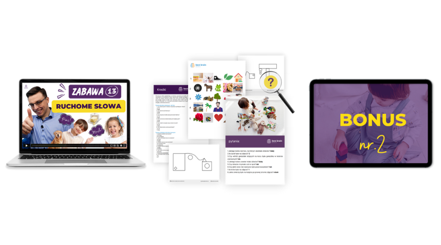 Tak, otrzymujesz dostęp do kilkudziesięciu zestawów ćwiczeń do pobrania, które mają na celu poprawę uwagi słuchowej, pamięci, koncentracji uwagi, spostrzegawczości, uważności i kreatywności Twojego dziecka.
